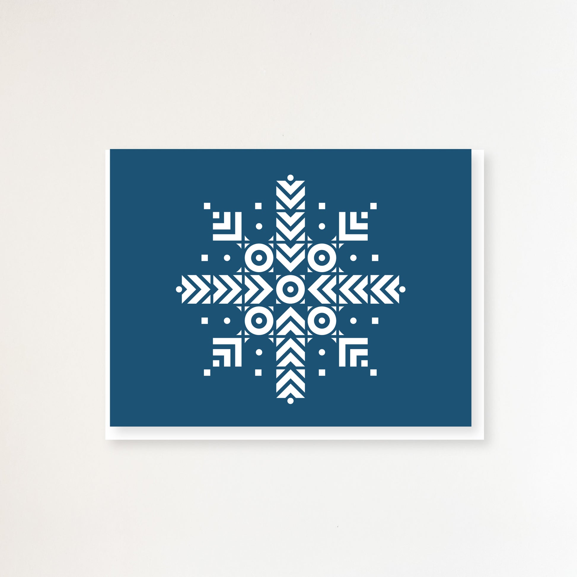 Created in celebration of the holiday season, this unique snowflake greeting card design was hand-printed by Robert Brochu. The card is blank on the inside and comes with an A2 envelope for mailing.